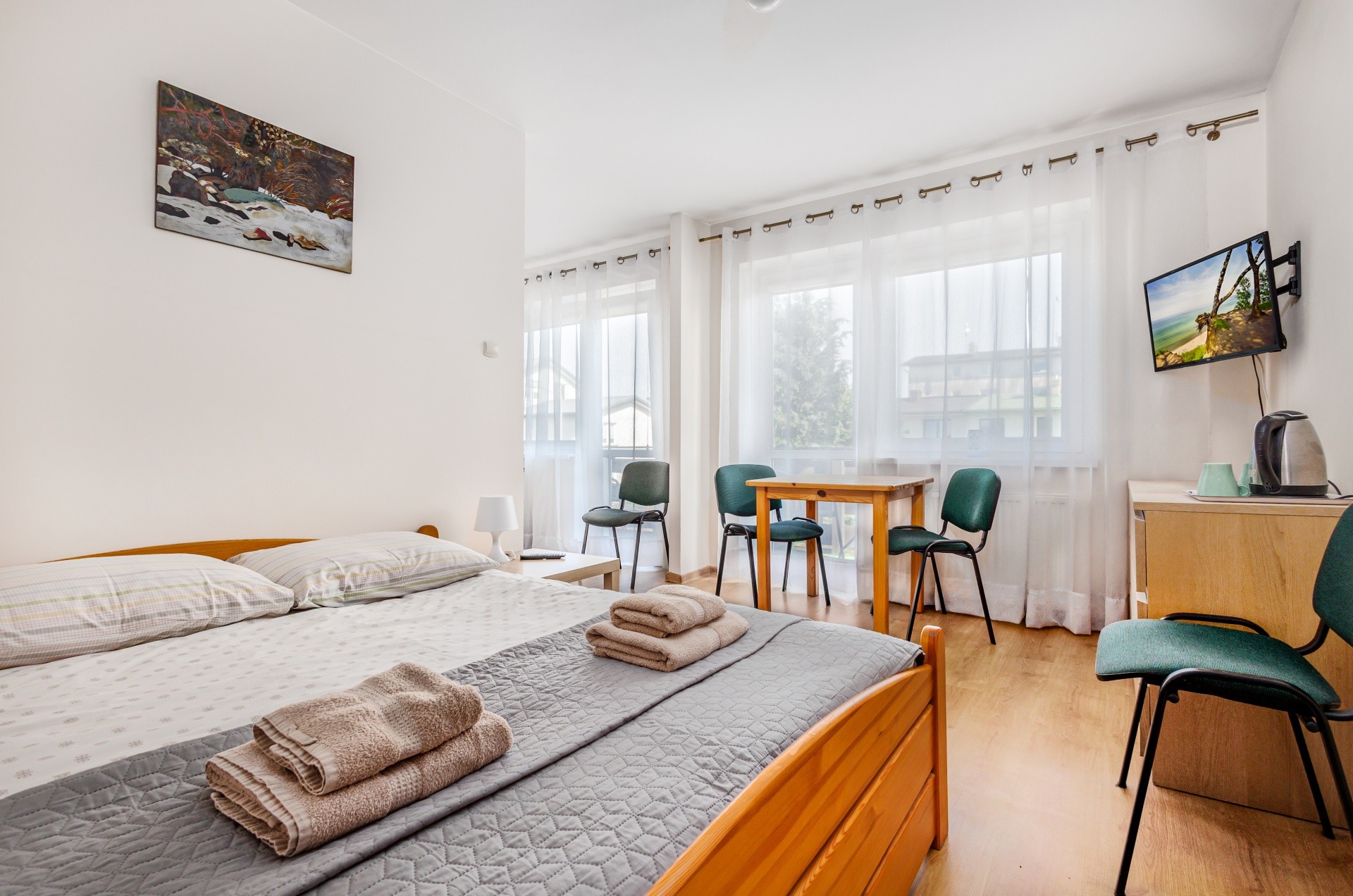 - salon z TV, aneks kuchenny i jadalnia
