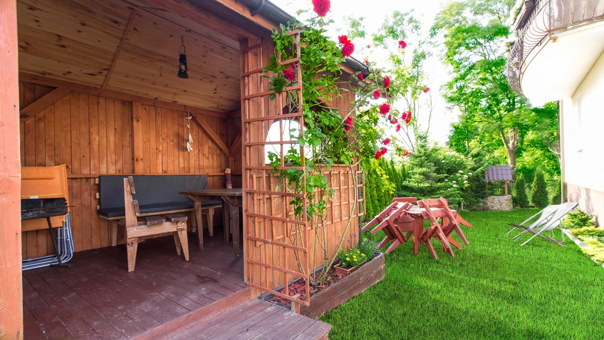 - Oferujemy również: pokój 3-osobowy z osobnym wejściem, aneksem kuchennym, łazienką, altanką i grillem.
